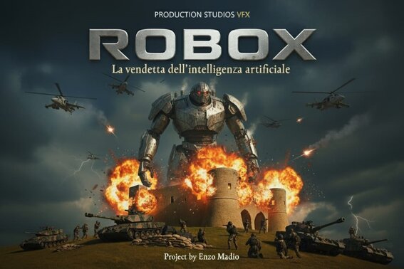 PRODUCTION STUDIOS VFX di Enzo Madio, si tuffa con decisione nel genere sci-fi d'azione e catastrofico con il suo ultimo e più esplosivo progetto: "ROBOX – La vendetta dell'intelligenza artificiale".